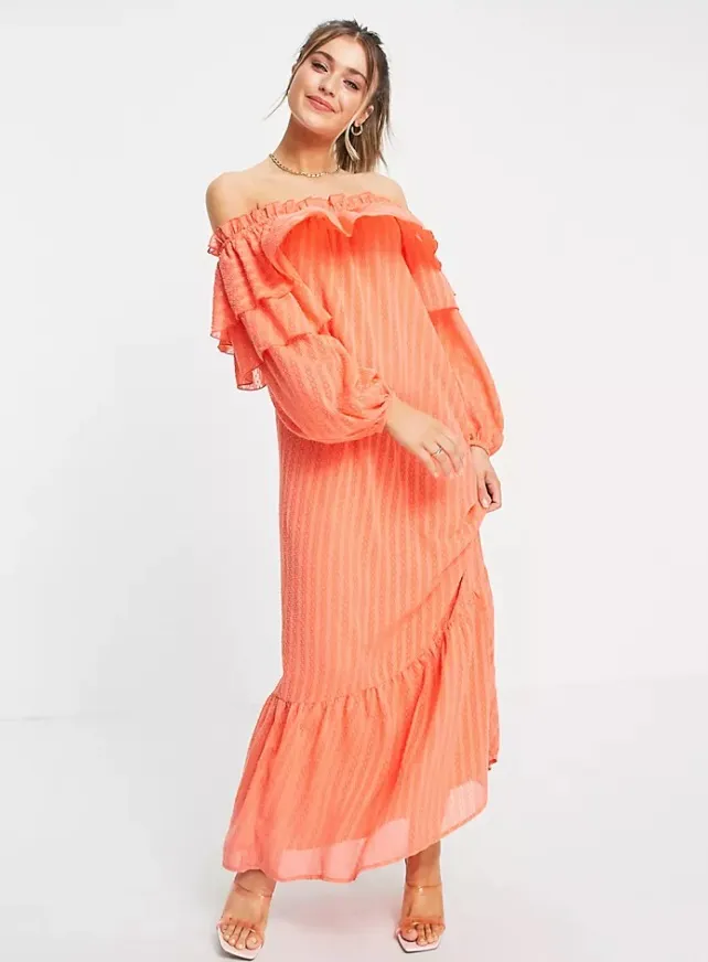 Тем, кто ищет что-то простое, но в то же время эффектное, стоит обратить внимание на оранжевое платье макси с объемными рукавами. Оно одинаково хорошо смотрится и с босоножками на каблуке, и с кедами, и с сандалиями.