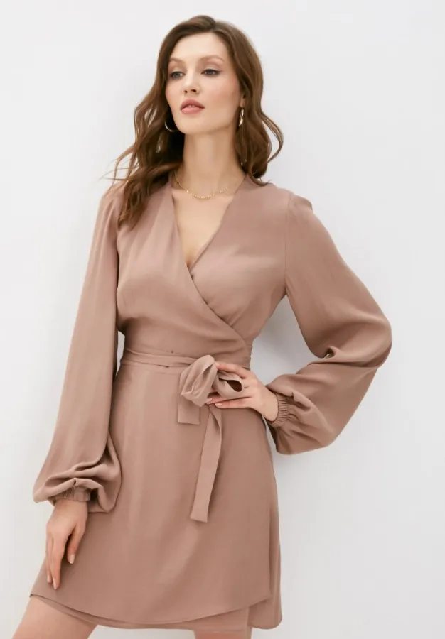 С задачей подчеркнуть грудь и сделать силуэт более женственным и выразительным справится платье с запахом и глубоким V-образным вырезом. Чтобы усилить эффект, добавь широкий пояс-корсет.