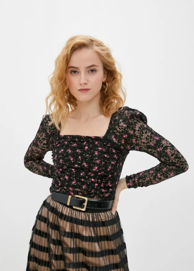 Для романтичных образов выбирай блузу со сборками и квадратным вырезом. Носи ее с летящей юбкой, широкими брюками с высокой посадкой или джинсами в винтажном стиле.