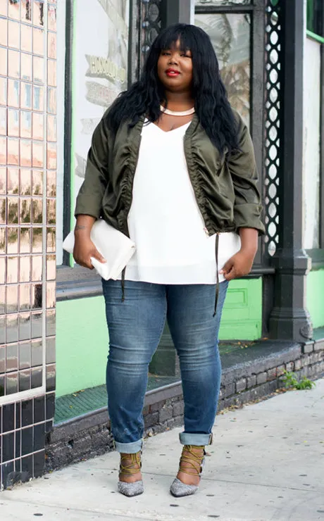 Не стоит бояться носить облегающие вещи. Например, джинсы. Они могут выглядеть очень хорошо даже на крупной фигуре. Важно, чтобы они все же нигде не перетягивали тело (вещь на размер меньше не сделает тебя стройнее, а наоборот, подчеркнет все складки и недостатки). И в целом лучше такие вещи использовать в многослойных комплектах.