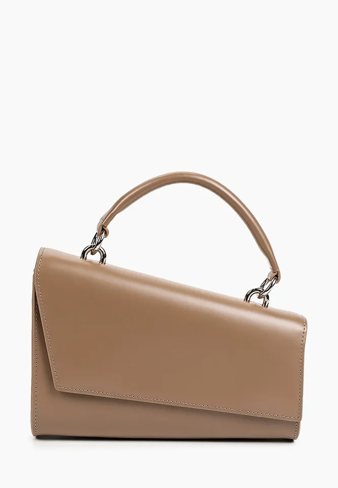 Одними из самых модных сумок зимы 2022 года стали модели асимметричных форм. Нашим фаворитом стала бежевая кожаная сумка в форме неправильной трапеции. Подобные модели одинаково хорошо смотрятся как в деловых, так и в будничных и вечерних луках. Нестандартный аксессуар добавит образу остроты и заставит заиграть по-новому даже самый простой и обычный аутфит вроде белой рубашки и джинсов. Старайся искать максимально лаконичные варианты без лишнего декора: асимметричные сумки и без этого смотрятся достаточно эффектно.