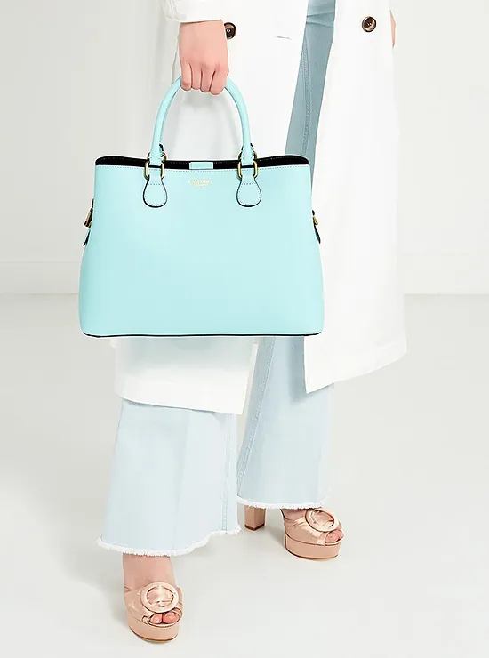 Тем, кто предпочитает классику, придется по душе эта сумка-тоут бирюзового цвета. Ее можно взять и на свидание, и на работу.