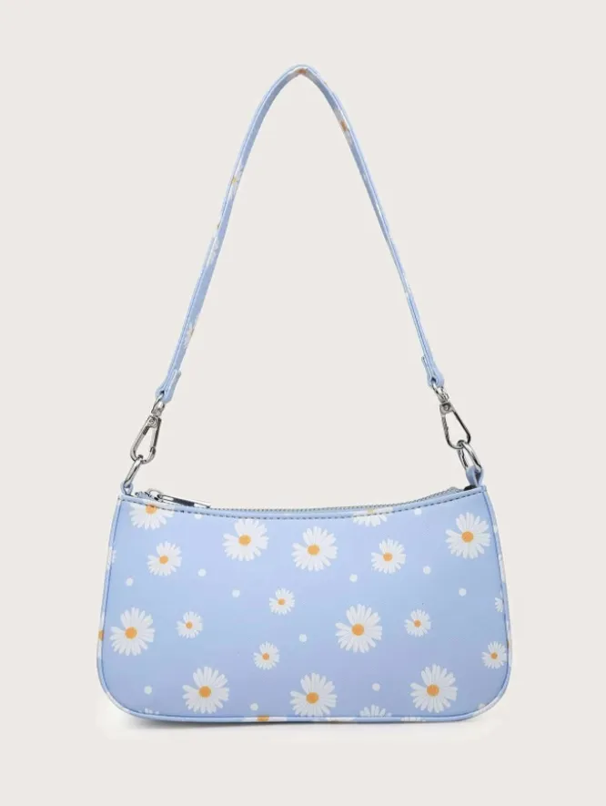 Нежная, немного инфантильная сумка-багет с цветочными мотивами станет модным дополнением к любому летнему образу. Она подойдет и к однотонным льняным костюмам, и к летящим платьям.