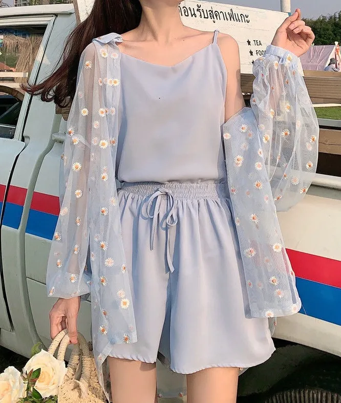 Прозрачная рубашка с милыми ромашками – отличное дополнение к весенне-летним образам. Надевай ее поверх кроп-топа, вязаного бра или однотонной рубашки.