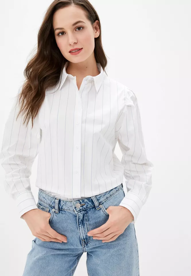 Выбирай лаконичную рубашку с пышными рукавами и носи ее с джинсами или брюками с высокой посадкой. Заправь край рубашки за пояс, чтобы подчеркнуть талию. Усилить эффект поможет контрастный пояс.