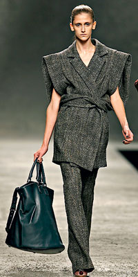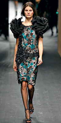 Раньше увеличение объема плеча достигалось с помощью подплечников, сегодня – за счет конструкции и материалов, позволяющих задавать необходимые форму и жесткость. Складки и сборки по окату рукава напоминают костюмы Викторианской эпохи. На первый взгляд