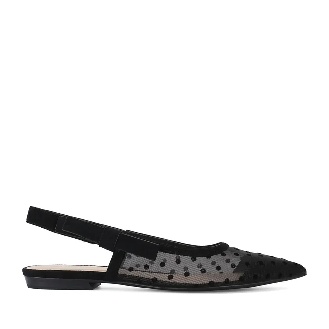Присмотрись и к с слингбэкам в сетку, в удобстве они никак не уступают балеткам. Только держи в голове небольшой нюанс: в тренде сейчас или крупная сетка, или, наоборот, супермелкая – как та самая дымка, которую мы обсуждали выше. И да, не боимся страз – они сейчас гиперактуальны!