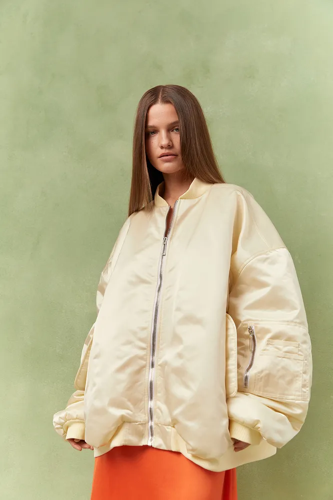Simone Rocha, Givenchy, Loewe и Saint Laurent не могут ошибаться одновременно. Как и Джиджи Хадид, Кендалл Дженнер, Перниль Тейсбек — и другие знаменитые фэщэниста. Все они не первый сезон выгуливают бомберы, меряясь друг с другом размером и формой дутых рукавов, принтами и нетривиальными материалами, которые превращают объемные куртки в нечто большее, чем просто верхняя одежда.