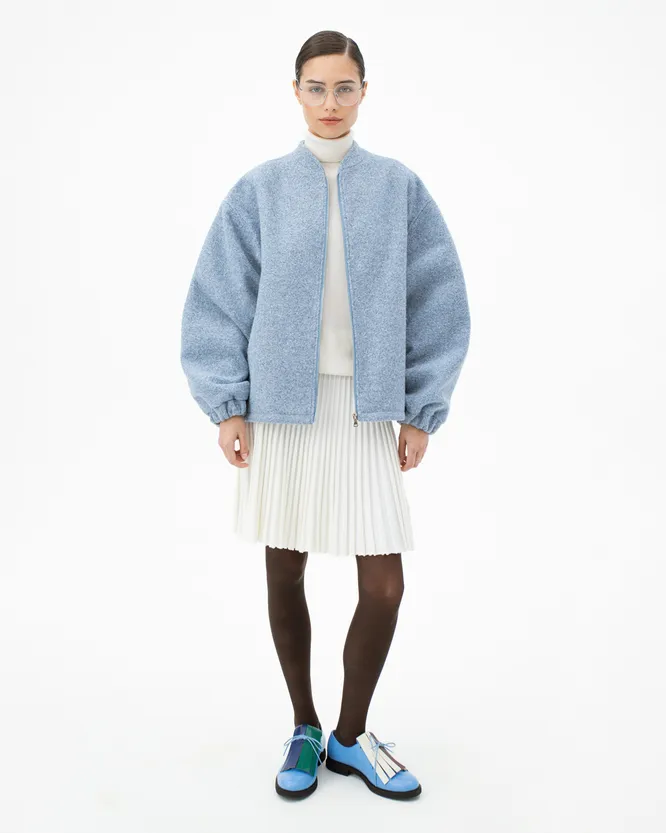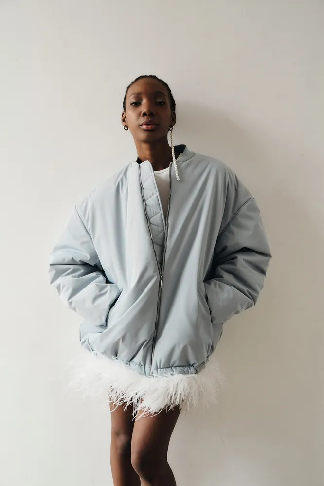 Большой плюс бомберов в том, что они созданы, чтобы быть акцентом в образе. Тебе не нужно долго думать о том, как именно собрать небанальный look — просто добавь к самым повседневным комбинациям вроде футболки и джинсов или трикотажного платья и ботинок необычную куртку с объемными рукавами.