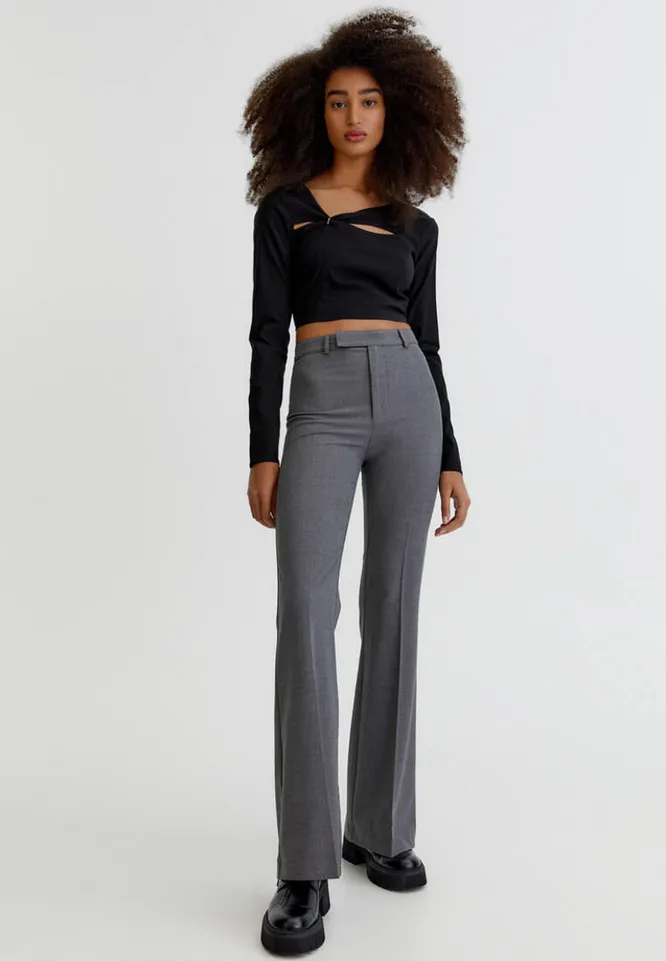 Одними из самых модных женских брюк зимы 2022 года остаются расклешенные модели, как широкие, так и облегающего кроя. Наиболее выигрышны брюки клеш с высокой посадкой. Чтобы создать стильный выразительный лук, комбинируй их с объемными блузами и не забудь подчеркнуть талию ремнем. Также они органично смотрятся с классическими брюками и удлиненными блейзерами – так можно пойти в офис или на деловую встречу. Нужен повседневный лук? Миксуй расклешенные брюки с узорчатым джемпером и грубыми ботинками.