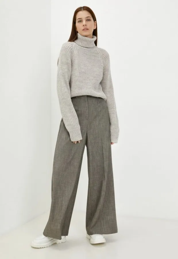 Модные луки на зиму-2022 получатся с брюками из трикотажа. Это могут быть как прямые, так и расклешенные модели, а также брюки-джоггеры. Ищи варианты из плотного трикотажного шерстяного или кашемирового полотна – в них точно не замерзнешь.
