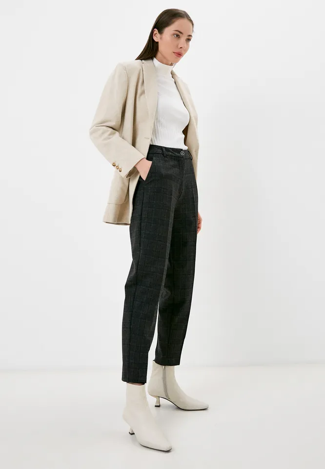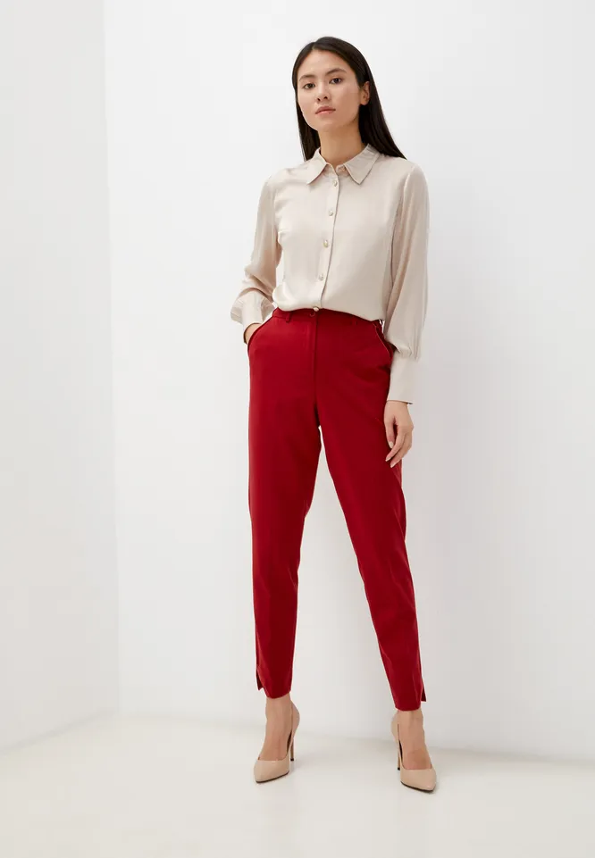 Модные женские брюки зимы 2022 года со стрелками станут отличной основой для элегантных сдержанных аутфитов. В офис предлагаем носить их с классической сорочкой и приталенным жакетом в тон. В повседневной жизни – с высокими грубыми ботинками и объемным свитером. На встречу с подругами в баре или ресторане – с шелковой блузкой и остроносыми ботильонами на каблуке. Кстати, стрелки добавляют в образ дополнительные вертикали, за счет чего вытягивается силуэт, а ноги кажутся длиннее и стройнее. Важно правильно подобрать размер, чтобы стрелки в области бедер не разглаживались.
