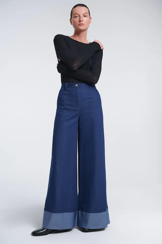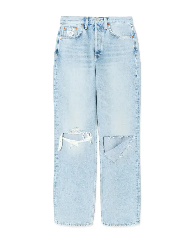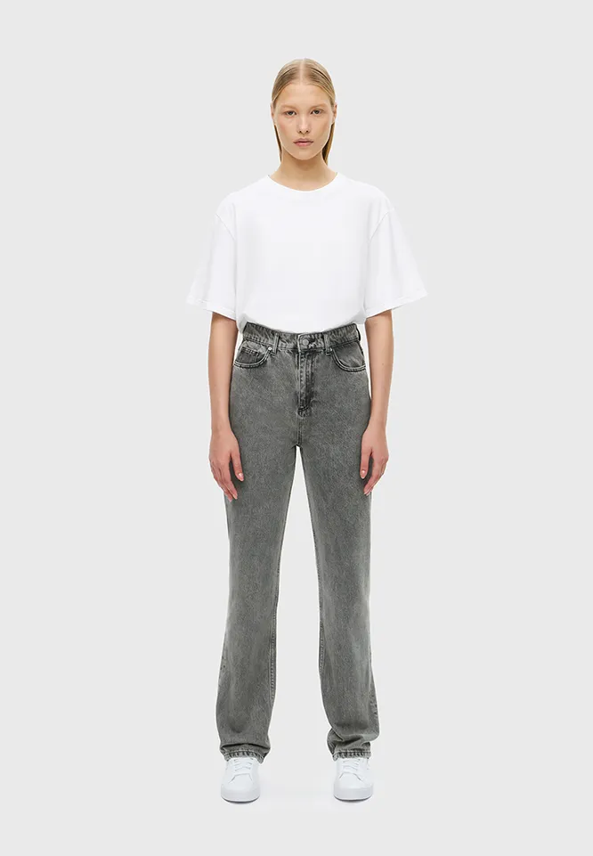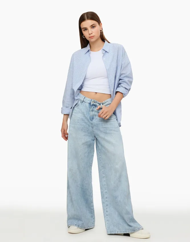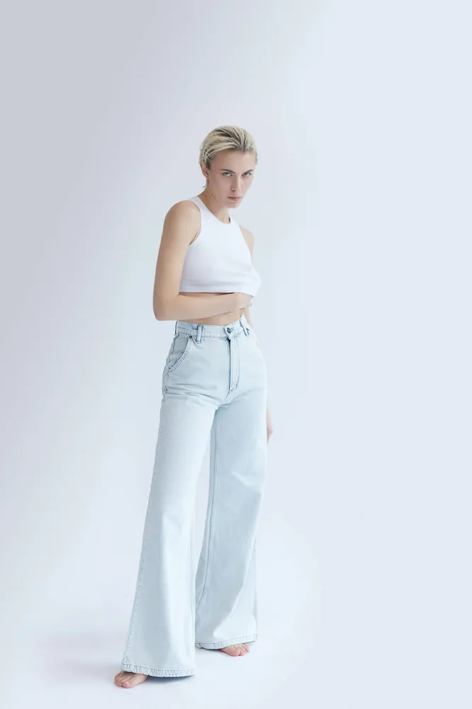 Начнем с широких джинсов — за последние сезоны они стали мастхэвом. Не обязательно выбирать брюки на низкой посадке, которые известны своим «побочным эффектом» в виде укорачивания роста. Просто примерь модель с высокой талией: носить ее будет комфортно, а эффект расслабленного денима сохранится.
