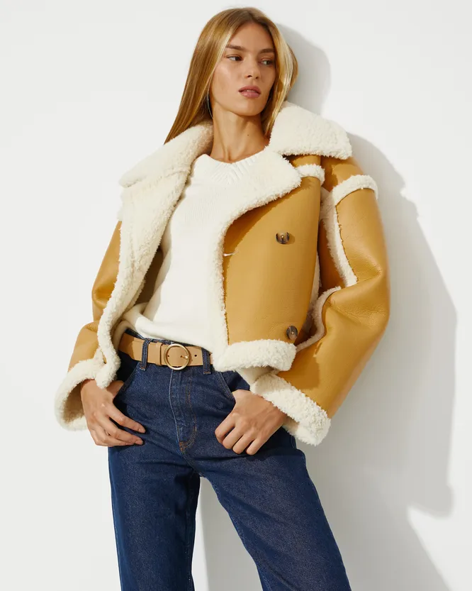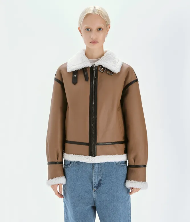 Фэшэниста жалуют и утепленные куртки-авиаторы с массивным воротом, который защищает от ветра — отличная находка! Цветовая гамма не ограничена базовыми оттенками вроде черного, шоколадного, хаки, бежевого и серого, но именно их, как правило, выбирают модницы — просто удобнее стилизовать с повседневной одеждой. Но если тебе приглянется модель насыщенного небанального цвета, не отказывай себе в этой роскоши: не зря дубленки еще называют statement coat — от слова «заявление».