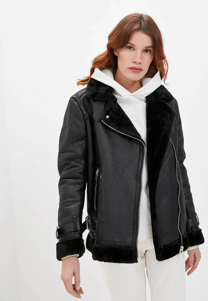 Более практичный вариант – черная дубленка-пилот с белым отложным воротником. Такая модель добавит образам остроту и дерзость. Можно носить ее в тандеме с кожаными брюками и высокими грубыми ботинками на тракторной подошве или сыграть на контрасте и надевать с романтичным платьем в цветочек и остроносыми ботильонами на каблуке. Предмет гардероба также органично смотрится с любыми джинсами и повседневными брюками. И кто теперь скажет, что подобные модные дубленки когда-то были исключительно мужскими!