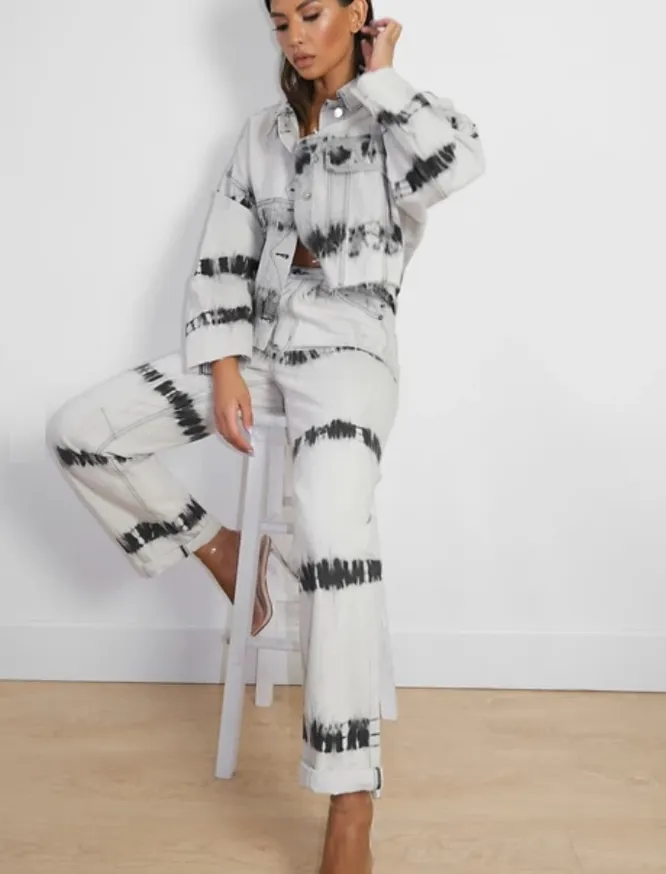 Создавать стильные образы в эстетике 90-х годов помогут джинсы с принтом тай-дай. Носи их со свитером на молнии и кожаными кедами, спортивной курткой и массивными кроссовками, ярким джемпером и ботинками на шнуровке.