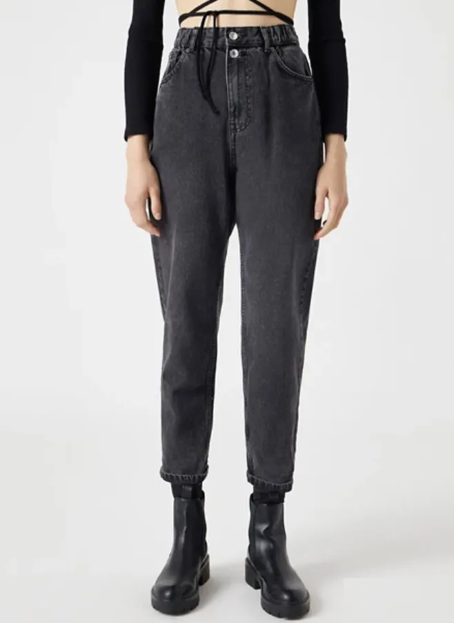 Черные джинсы-бананы с легким эффектом застиранности отлично впишутся в образ, куда бы ты ни собиралась. Высокая посадка, лаконичный крой и отсутствие акцентного декора позволяют носить их как в составе повседневных расслабленных образов, так и интегрировать в более строгие луки. Такие джинсы гармонично смотрятся с минималистичными свитерами и блузами, базовыми пуловерами и строгими блейзерами, а также с характерными кожаными рубашками.