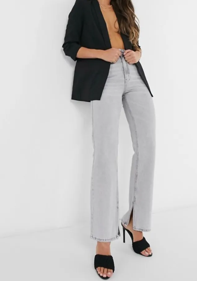 Ну и куда же без вечной классики – базовых прямых джинсов. Мы выбрали модель светло-серого цвета с небольшими разрезами на кромках. Если хочешь создать образ в стиле smart casual, сочетай их с тельняшкой, удлиненным блейзером с жесткими плечами, лодочками и лаконичной кожаной сумкой. Чтобы собрать более расслабленный аутфит, дополняй джинсы объемным свитшотом, кедами, поверх надевай плюшевое пальто, джинсовую оверсайз-куртку или тренч.