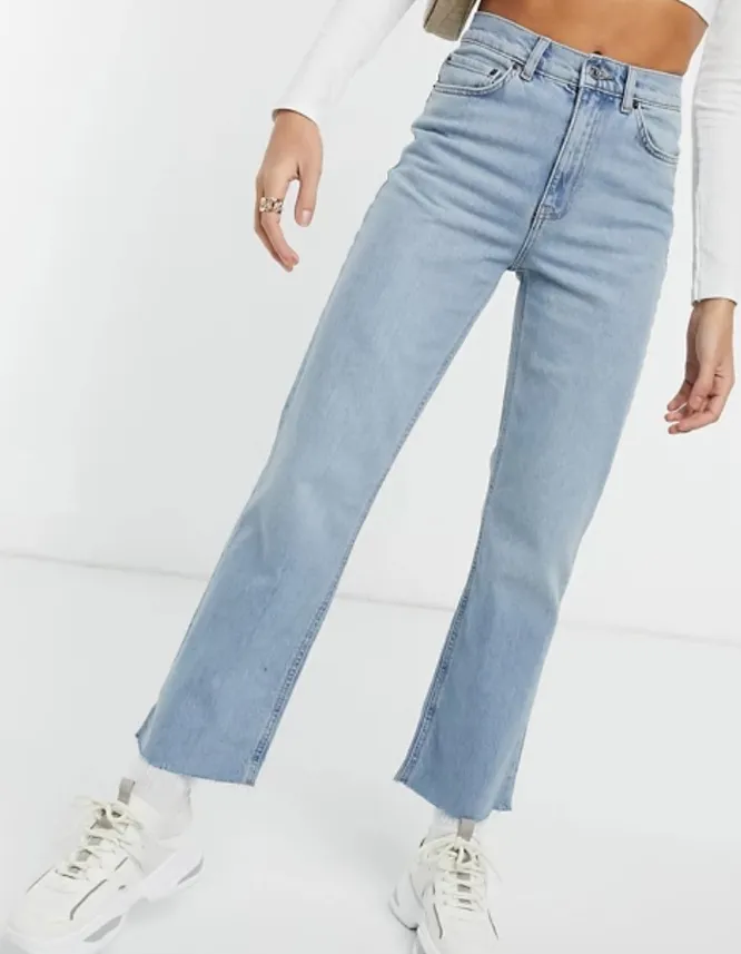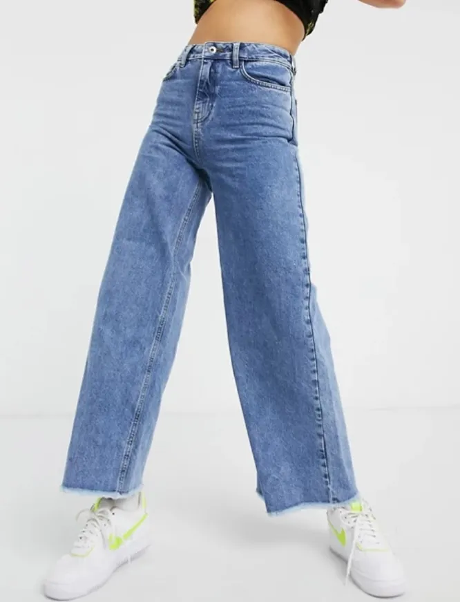 По-прежнему актуальны и укороченные джинсы клеш. Обрати на такие модели внимание, если не получается подобрать идеальную пару стандартной длины. Они отлично смотрятся как с кроссовками и кедами, так и с высокими ботильонами, облегающими щиколотку, ботинками на шнуровке, туфлями и босоножками. Выбирай модель с высокой талией, чтобы визуально удлинить ноги и гармонизировать пропорции фигуры.