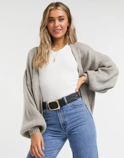 Кардиган с объемными рукавами и базовые джинсы