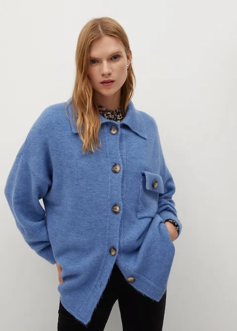 Голубой кардиган рубашечного кроя, Mango