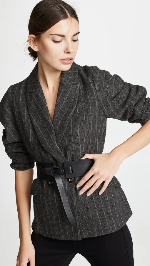 Этот блейзер можно носить как с рубашкой или топом, так и на голое тело. Широкий кожаный пояс создает акцент на талии, придавая фигуре соблазнительный женственный силуэт. Такую модель ты сможешь надеть куда угодно: с черными skinny и элегантными лодочками — в офис, с рваными джинсами и кедами — на прогулку или шопинг.