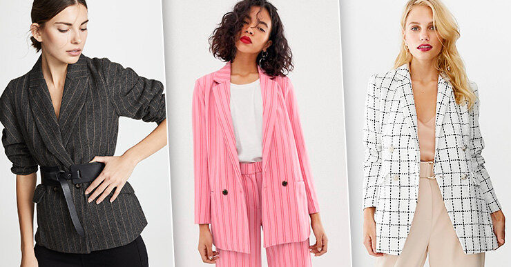 Розовый oversize-пиджак в полоску хорош для свидания. Если вы с любимым планируете прогуляться в парке, надевай классические синие джинсы, кроссовки на толстой подошве, удобную футболку, а сверху пиджак, чтобы не замерзнуть. Отправляясь на ужин в ресторане, добавь к нему широкие брюки, топ в бельевом стиле и лодочки kitten heels.