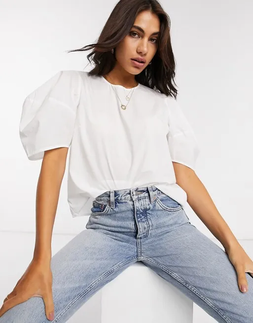 Поклонницам минимализма советуем обратить внимание на объемный белый топ из поплина. В такой модели ты будешь чувствовать себя максимально комфортно даже в жару. Свободная посадка, объемные рукава и ничего лишнего — возьми этот топ за основу и подбирай к нему сочетания в зависимости от настроения. Если хочется чего-то простого, надевай его с джинсами и кедами, дополнив парой лаконичных деталей. Для особых случаев подбирай к нему нарядную юбку миди и яркие босоножки и не забудь про аксессуары!