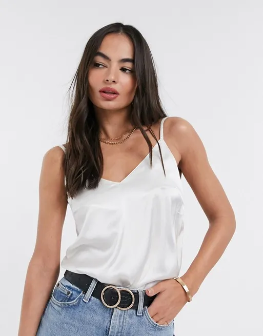 Белый атласный топ на бретелях послужит классной базой для твоих летних образов. Тебе не придется гадать, с чем его сочетать — эта модель составит отличную пару джинсам и идеально дополнит стильный наряд на вечер с элегантными брюками или блестящей юбкой.