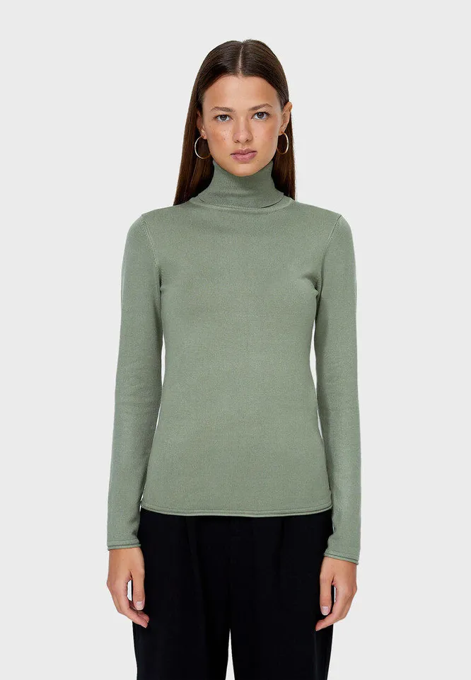 Базовая женская водолазка на осень-2021 из приятной вискозы – подходящий вариант для тех, кто любит создавать многослойные луки. Она практически не ощущается на теле, ее можно надеть и под рубашку, и под пиджак, и под джемпер, жилет, свитер, кардиган. Выбирай модели чуть свободного кроя, чтобы водолазка не слишком облегала тело.
