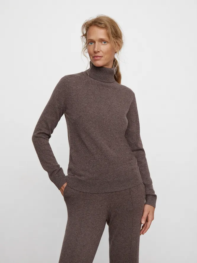 Еще один удачный базовый цвет для водолазки – коричневый. Он хорошо сочетается с модным в этом сезоне карамельным, всеми оттенками бежевого, серым, черным, бордовым, красным, зеленым. Мы выбрали модель полуприлегающего кроя из вискозы – идеальный вариант на каждый день!