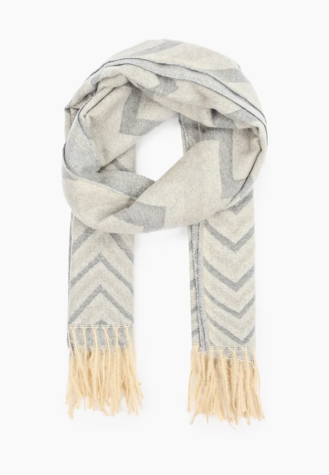 Интересный шарф с геометрическим узором. Идеальное дополнение к однотонному пальто или куртке. Сбалансируй его минималистичной шапкой без фактурных узоров и принтов. Если захочешь скомбинировать шарф с другой принтованной вещью, пусть они пересекаются по цветам, а один узор будет крупнее другого. Тогда получится гармоничный тандем, который не утяжелит образ.