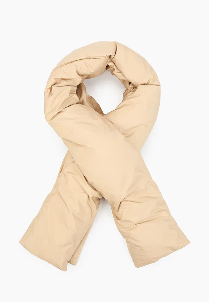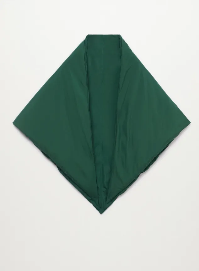 Необычный и стильный аксессуар – дутый стеганый шарф из плащовки. Мы выбрали вариант благородного изумрудного цвета. Можно повязать его на плечи поверх пальто или куртки или носить как косынку. Дутый шарф сделает образ более сложным и интересным.