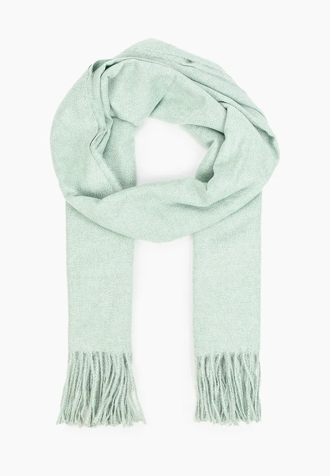 Ментоловый шарф хорошо смотрится с куртками в спортивном стиле, а также с меховыми пальто и светлой шубой-«чебурашкой». Поддержи образ шапкой насыщенного зеленого цвета и акцентной сумкой.