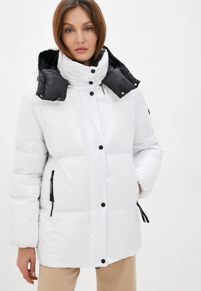 Если хочешь подчеркнуть фигуру и создать выразительный силуэт, советуем купить белый зимний пуховик с поясом. Обрати внимание на эту модель. Удачная длина до середины бедра, минималистичный дизайн, утеплитель из натурального пуха и пера – этот пуховик станет лучшим дополнением к любому твоему зимнему аутфиту, будь то трикотажный костюм или женственное платье из плотного трикотажа.