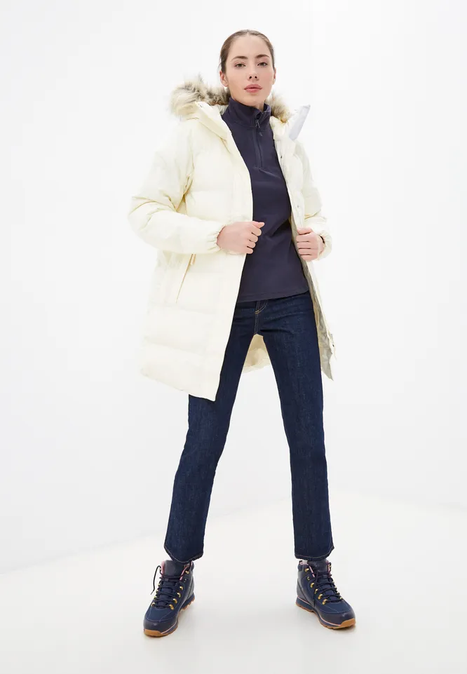 Белый женский пуховик с мехом станет отличным дополнением к повседневным зимним casual-образам. Предлагаем носить его с джинсами, ботинками на тракторной подошве, уютным шарфом и шапкой-ушанкой, если, например, собираешься на прогулку. Также эта белая куртка-пуховик пригодится тебе на отдыхе за городом или на горнолыжном склоне.