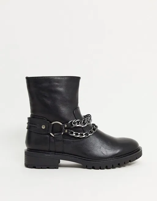 Еще одна важная деталь, которая появилась на осенней обуви в этом году — цепочки. И речь не о тонких и аккуратных металлических звеньях, а — о толстых и громоздких. Такие черные осенние ботинки — удачный пример трендовой пары.