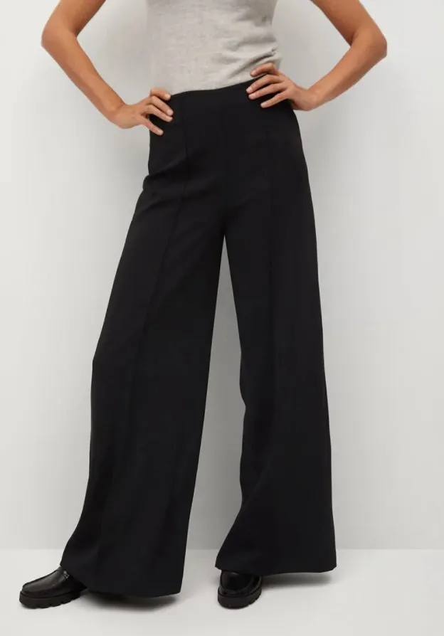 Широкие брюки в пол держат свои позиции в списках модных трендов уже несколько сезонов подряд. Этой весной предлагаем примерить модель универсального черного цвета. Высокая посадка и стрелки позволят визуально удлинить ноги и гармонизировать пропорции фигуры. Носить их можно и в офис (с классическими рубашками и лоферами), и на вечеринки (с лодочками и воздушными блузами).