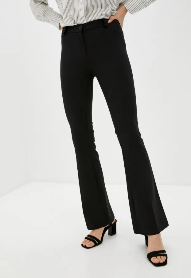 Черные брюки клеш со стрелками — модная альтернатива классическим моделям. Носи их с шелковыми блузами, строгими рубашками или романтичными топами с воланами.