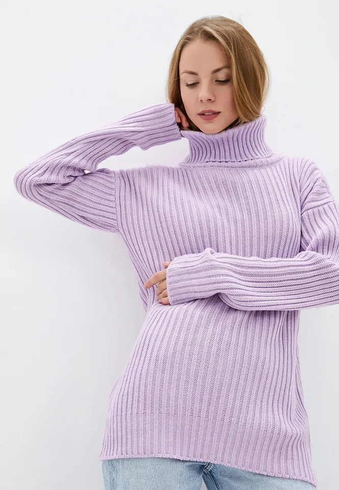 Нежнее нежного — именно так мы опишем этот свитер. Лиловый оттенок очень хорош весной. Свободный удлиненный крой позволяет носить такую модель и навыпуск, и заправив внутрь. Легкий, мягкий материал приятен в носке, он дает коже дышать, ты будешь чувствовать себя комфортно в любую погоду.
