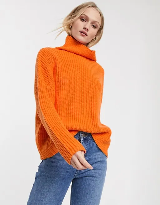 Поклонницам ярких оттенков советуем обратить внимание на модель цвета сочного апельсина. Лаконичный свитер необычной расцветки станет глотком свежего воздуха для тебя этой весной. Добавляй его к базовым вещами, чтобы создать интересный и гармоничный образ.