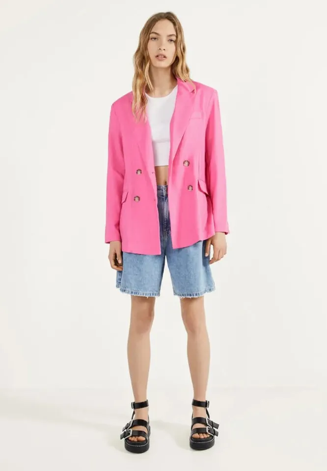 Самый простой способ сделать образ ярче — накинуть модный розовый пиджак. Выбирай удлиненную модель свободного кроя и носи расстегнутой. Она послужит отличным дополнением к повседневным джинсам, лаконичным шортам в офис, романтичным юбкам и летним платьям. Незаменимая вещь в этом сезоне!