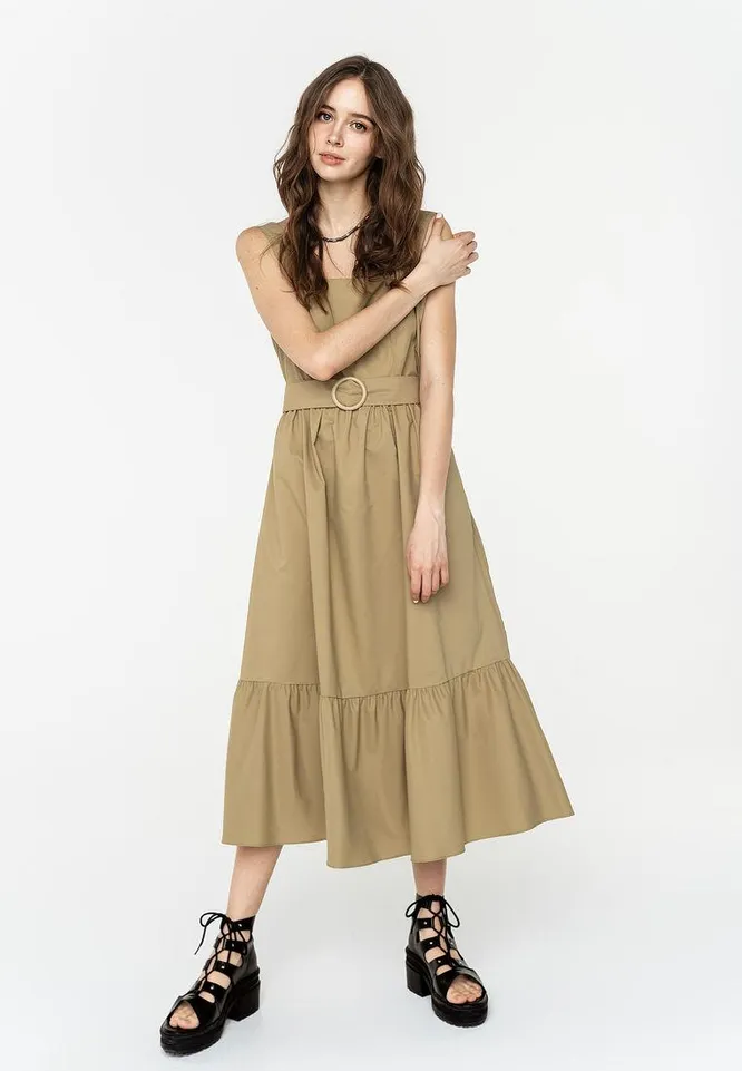 Создать простой, но динамичный образ поможет ярусный сарафан макси с поясом. В нем можно пойти не только в офис, но и на модную вечеринку, прогулку в парке или пляж — всё зависит от стилизации.