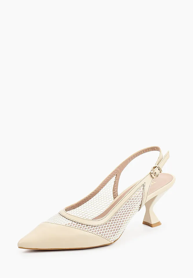 Классические лодочки летом меняем на остроносые туфли с открытой пяткой.