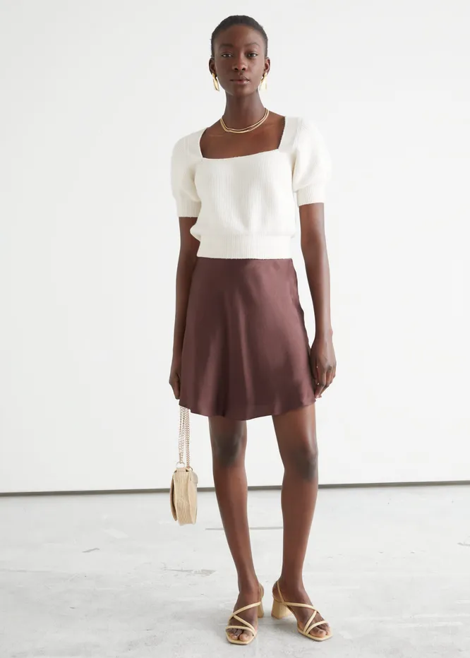 Лаконичная юбка в бельевом стиле пригодится и летом, и осенью. В жаркий сезон носи ее с укороченным топом, а в холодный — с водолазкой или объемным свитером.