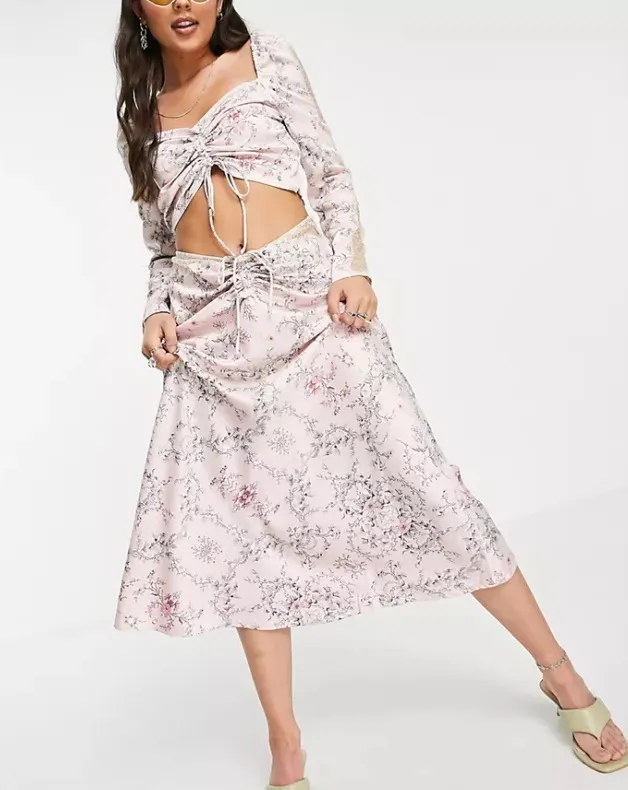 Юбка с цветочным принтом в винтажном стиле поможет создать романтичный и женственный лук для свидания или свадьбы друзей. Дополни ее обувью на каблуке и топом со сборками на груди.