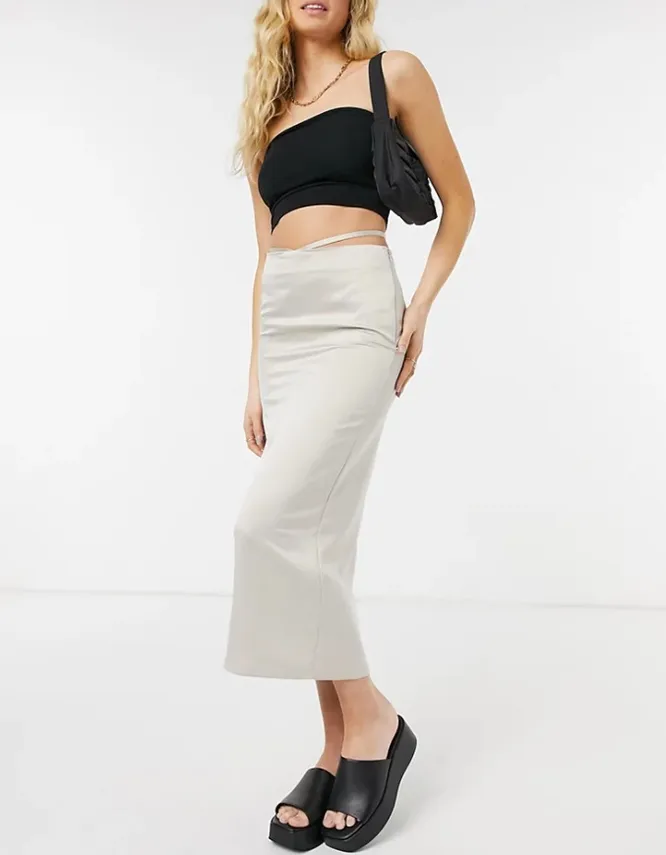Если хочешь подчеркнуть фигуру и добавить образу сексуальность, выбирай модную в этом сезоне юбку по фигуре с завязками на талии.
