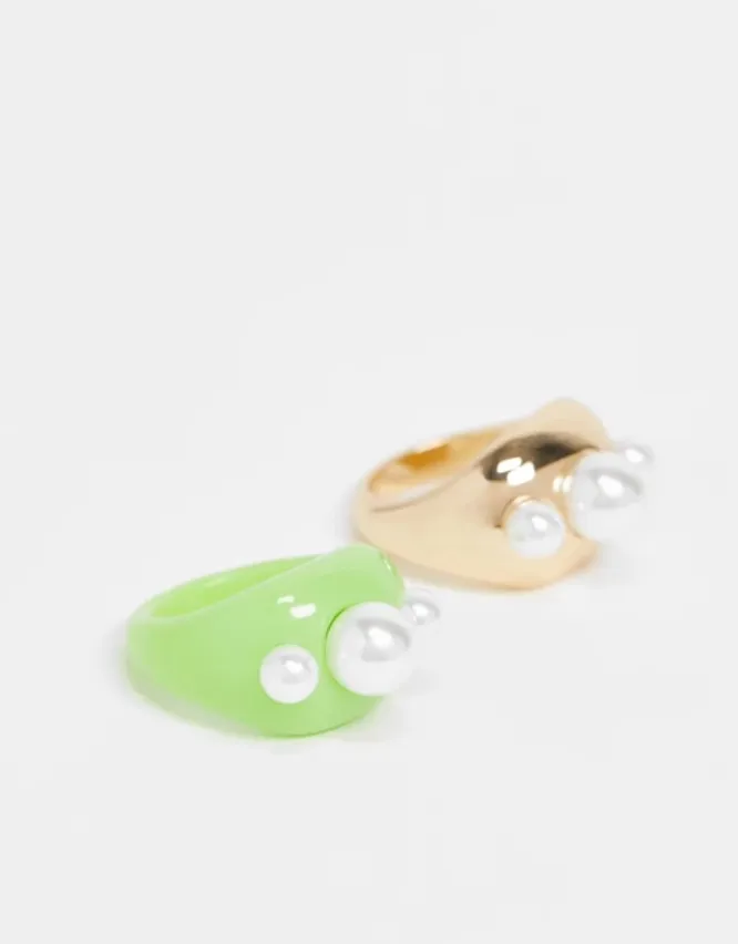 Два очаровательных кольца из пластика, украшенные перламутровыми бусинами, добавят образу немного инфантильности.