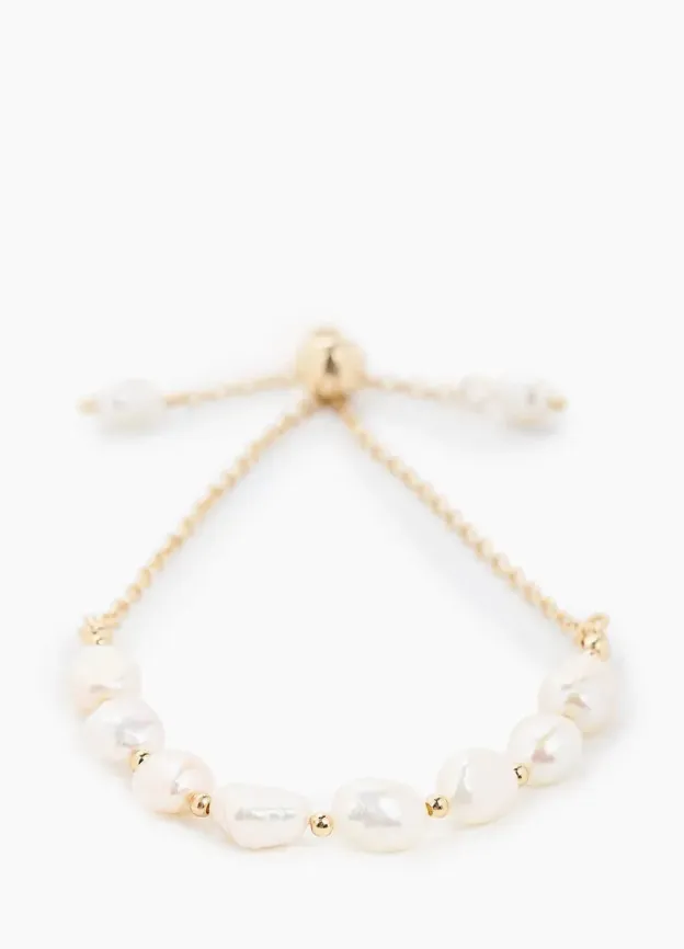 К женственным платьям и шелковым блузам подойдет золотистый браслет с жемчужинами неправильной формы.