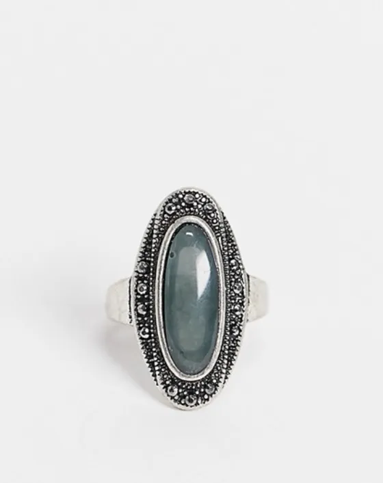 Кольцо в винтажном стиле продолговатой формы идеально впишется в деловые образы, женственные аутфиты с летящими платьями, а также в луки в стиле бохо.